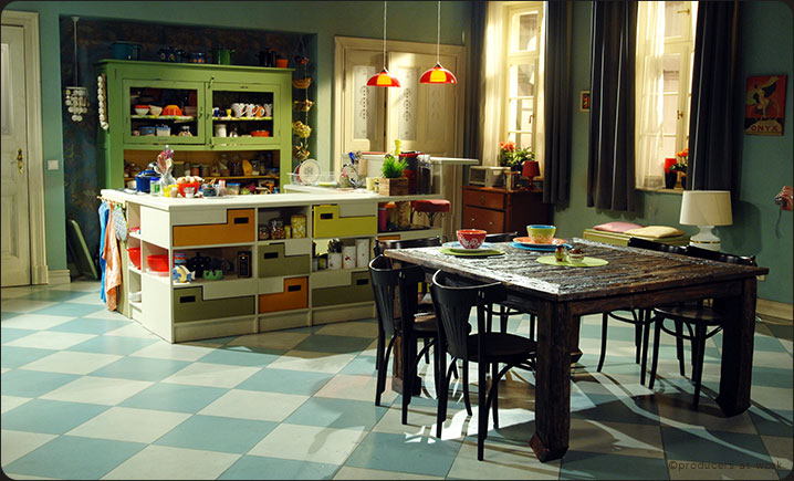 Hier haben wir die Küche einer Wohngemeinschaft entworfen. Das ausgefallene Küchenelement mit den interessanten