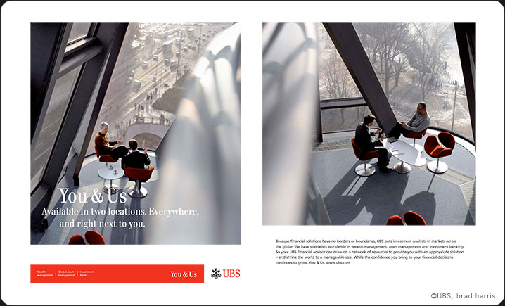 UBS Bank ergänzen das ansonsten kühle Gesamtbild, passend zur Botschaft „You & Us“.